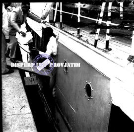 Acara ramah tamah pada peringatan hari PORAS (Perhimpunan Olah Raga Air Surabaya) diatas kapal di tanjung perak Surabaya, 17 – 4 - 1954
