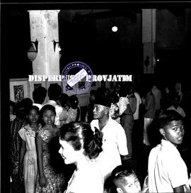 Antusiasme warga kota Surabaya melihat pameran foto di kantor gubernuran dalam malam peringatan HUT Kemerdekaan Republik Indonesia ke 12 di Surabaya, 17 – 8 – 1957