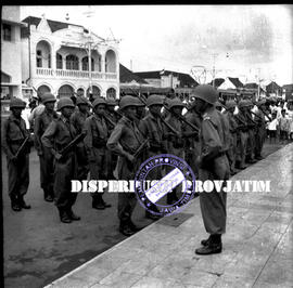 Apel di depan kantor gubernuran / depan tugu pahlawan dalam Peringatan HUT Kemerdekaan Republik Indonesia ke 11 di Surabaya, 17 – 8 – 1956