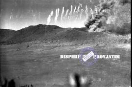 Asap mengepul dari kawah gunung bromo, sesuai dengan catatan sejarah pada tahun 1956 pernah terjadi erupsi namun tidak tercatat secara terinci, foto diambil dari cemoro lawang pada Kasada, 24 – 6 – 1956
