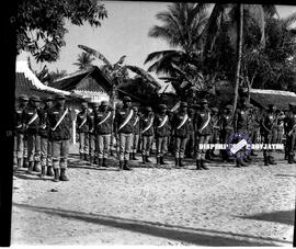 Barisan kontingen penyambut kedatangan bendera PON VII Surabaya ketika berada di Kecamatan Mantingan, Ngawi, 6 - 8 – 1969