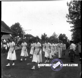 Item VI.57.2030 - Barisan kontingen yang membawa bender a PON ketika berada di Surabaya untuk persiapan PON ke IV yang diselenggarakan di Makasar, 12 – 9 – 1957