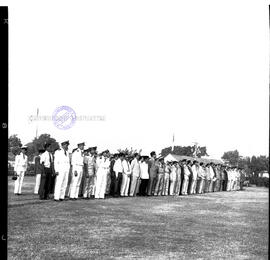 Barisan pejabat dan perwira pada upacara peringatan Hari Maritim di depan kantor Gubernuran Surabaya, 21 – 8 – 1963