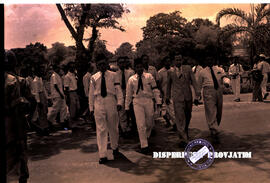 Beberapa orang pemuda sedang berjalan menuju kantor kedutaan / atase Belanda di Surabaya, 10 – 11 – 1957