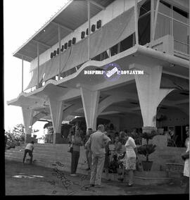 Beberapa orang turis mancanegara asyik bercengkerama di depan Hotel Tanjung, foto diambil pada kegiatan Promotion Tour di Prigen, Tretes, 10 – 9 – 1969