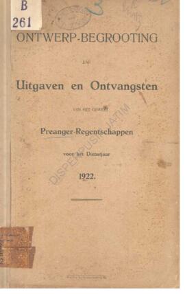 Begrooting van de bedrijven van het gewest preanger regentschappen voor het dienstjaar 1922 Rencana anggaran penerimaan dan pengeluaran dari Kabupaten Priangan tahun 1922