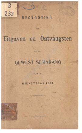 Begrooting van uitgaven en ontvangsten van het gewest Semarang voor het dienstjaar 1919 Anggaran Penerimaan dan pengeluaran di daerah Semarang untuk tahun Dinas 1919