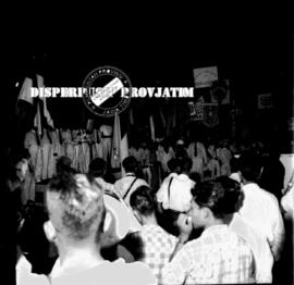 Berbagai tulisan slogan dan spanduk dibawa masyarakat surabaya dalam malam pekan Irian Barat di Surabaya, 27 – 10 – 1957