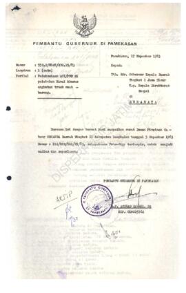 Berkas dari pembantu gubernur di pamekasan kepada gubernur KDH TK I Jatim kepala derektorat sospol di Surabaya tgl 17 november 1983 tentang pelaksana AVI / PMB di pelabuhan Kamal khusus angkutan truck muat barang 3 lembar Pertinggal, baik
