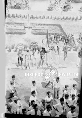 Demonstrasi penguni – penghuni liar, terlihat beberapa orang membawa berbagai tulisan, 18 – 4 – 1956
