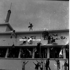 Item VI.69.3650 - Drama teatrikal perobekan bendera Merah Putih Biru di Hotel Yamato / Sarkies / Majapahit dalam peringatan Hari Pahlawan di Surabaya, 10 – 11 – 1969