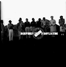 Dua orang wisatawan sedang berjalan menuruni lereng kawah gunung bromo pada Kasada, 24 – 6 – 1956