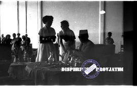 Item VI.57.2123 - Dua remaja putri sedang melayani di meja makan Presiden Sukarno pada acara pekan irian barat di Surabaya, 10 – 11 – 1957
