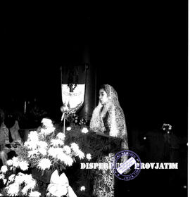 Fatmawati Soekarno sedang memberikan sambutan pada resepsi konggres PERWARI (Persatuan Wanita Republik Indonesia) di Surabaya, 13 – 12 - 1954