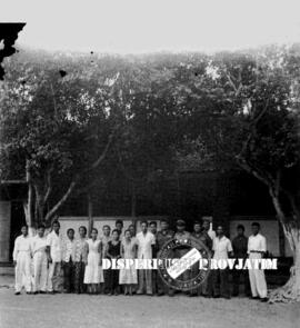 Foto bersama rombongan tim kebersihan saat peninjauan Tim Kebersihan Nasional ke Malang, Blitar dan Kediri, 25 – 7 – 1960