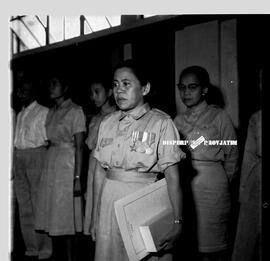 Foto Bu Darsih pegawai kantor Keresidenan Surabaya selesai penganugerahan bintang gerilya, 10 – 11 – 1964