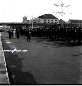 Gubernur Mochamad Wijono dengan beberapa perwira dari Kodam V Brawijaya, perwira dari Kepolisian Daerah Jawa Timur dalam peringatan hari Kebangkitan Nasional, Surabaya, 1 – 5 – 1963