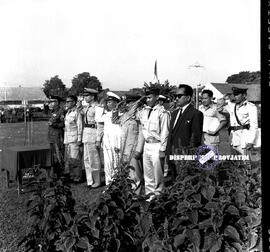 Gubernur Mochamad Wijono dengan beberapa perwira dari Kodam V Brawijaya, perwira dari Kepolisian Daerah Jawa Timur dan perwira dari Angkatan Laut dalam acara peringatan hari Kebangkitan Nasional yang dilaksanakan di Lapangan Tugu Pahlawan Surabaya, 1 – 5 – 1963