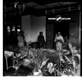 Gubernur Mochamad Wijono sedang memberikan sambutan / penghormatan terakir pada pemakaman kembali jenazah Residen Sudirman (Soedirman) di Surabaya, 19 – 7 – 1964