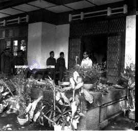 Gubernur Mochamad Wijono sedang memberikan sambutan / penghormatan terakir pada pemakaman kembali jenazah Residen Sudirman (Soedirman) di Surabaya, 19 – 7 – 1964