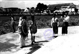 Gubernur Samadikun sedang meletakkan karangan bunga di Tugu Pahlawan pada Peringatan HUT Kemerdekaan Republik Indonesia ke 9 di Surabaya, 17 – 8 – 1954