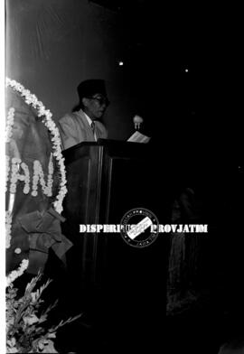 Gubernur Samadikun sedang memberikan sambutan pada malam pekan Irian Barat ke II di Grahadi Surabaya, 10 – 11 – 1957