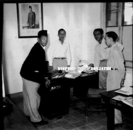 H. Sjirad keliling asia tenggara, foto bersama dengan pegawai di Djapen Djatim, 8 – 11 – 1956