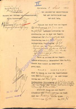 Het college van gedeputeerden van den prov. Raad van oost java, regentschap van toeloengagoeng, onderwerp regentschap begrooting pl. serord rgp Toeloengagoeng, Surabaya, 8 September 1933