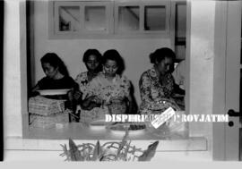 Ibu-ibu tengah mempersiapkan hidangan pada peringatan 5 tahun berdirinya P4 Kelamin, 10 - 11 – 1956