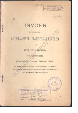 In'voer tot verbruik der voor naamste handelsartikelen op Java an Madoera , door particulieren gedurende de maand Februari 1915 en guderende de eerste twee