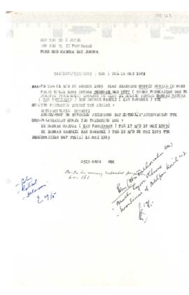 Kawat Gubernur KDH TK I Jatim kepada KDH TK II pamekasan tgl 16 Mei 1983 tentang survei sosial di pamekasan, Madura oleh tim kerjasama antara Seskoad dan BPPT 1 lembar Tembusan, baik
