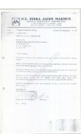 Kepala Kantor Departemen Tenaga Kerja Kotamadya Surabaya : Surat kepada Kepala Kantor Wilayah Departemen Tenaga Kerja Propinsi Jawa Timur tentang hasil pemeriksaan terhadap PT. Intra Jatim Makmur Surabaya