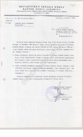 Kepala Kantor Departemen Tenaga Kerja Kotamadya Surabaya : Surat kepada Kepala Kantor Wilayah Departemen Tenaga Kerja Propinsi Jawa Timur tentang penyelesaian kasus ketenagakerjaan PT. Cahaya Samudra Makmur Surabaya