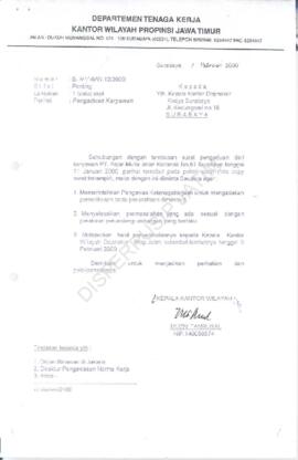 Kepala kantor Wilayah Departemen Tenaga Kerja Propinsi Jawa Timur kepada Kepala Kantor Departemen Tenaga Kerja Kotamadya Surabaya tentang penyelesaian pengaduan karyawan PT. Fajar Mulia Jl. Kalianak 61 Surabaya