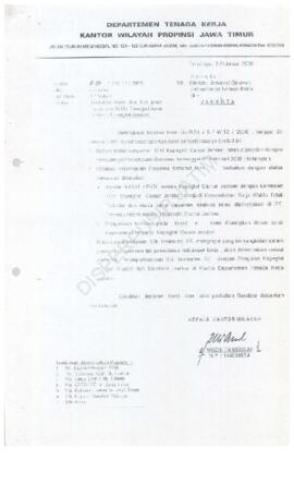Kepala Kantor Wilayah Departemen Tenaga Kerja Propinsi Jawa Timur : Surat kepada Direktur Jendral Binawas Departemen Tenaga Kerja RI tentang laporan tuntutan status dan hak para karyawan Tenaga Lepas Harian Kopegtel Jember