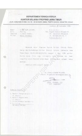 Kepala Kantor Wilayah Departemen Tenaga Kerja Propinsi Jawa Timur : Surat kepada Kepala Kantor Wilayah VI PT. Jamsostek (Persero) tentang bahan informasi dari berita koran” Suara Indonesia” mengenai Jamsostek