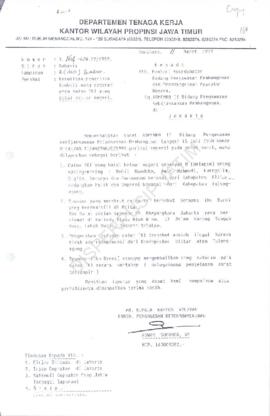 Kepala Kantor Wilayah Departemen Tenaga Kerja Propinsi Jawa Timur : Surat kepada Menteri Koordinator Bidang Pengawasan Pembangunan dan Pendayagunaan Aparatur Negara tentang kesulitan penarikan kembali uang setoran para calon TKI yang batal ke Luar Negeri