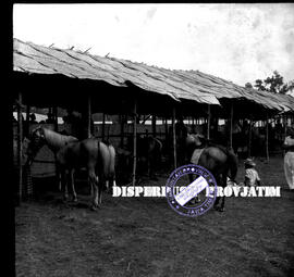 Kuda-kuda yang sebelem dan sesudah mengikuti lomba di taruh dalam istal (kadang kuda) sementara dalam lomba pacuan (patjuan) kuda di jombang (djombang) jawa timur, 26 – 8 – 1956