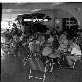 Item VI.69.3612 - Kumpulan turis mancanegara asyik bercengkerama teras Hotel Tanjung, foto diambil pada kegiatan Promotion Tour di Prigen Tretes, 10 – 9 – 1969