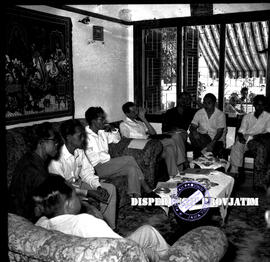 Kunjungan Moh. Natsir di Surabaya, tampak sedang berbincang-bincang dengan pejabat, 26 – 12 – 1954