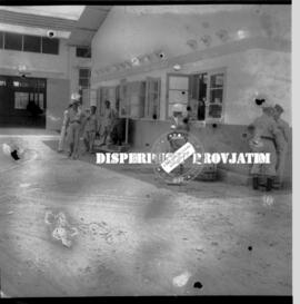 Kunjungan para pejabat ke sebuah instansi,  foto diambil setelah kejadian gempa bumi  yang melanda Malang, Tulungagung dan  Blitar, 23 – 10 – 1958