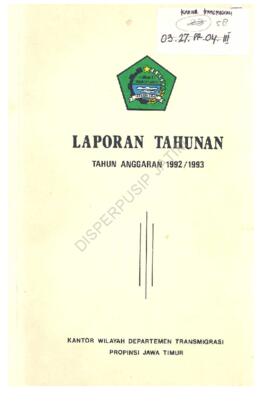 Laporan Tahunan T.A 1992 / 1993 Kantor Wilayah Direktorat Jenderal Transmigrasi Propinsi Jawa Timur.
