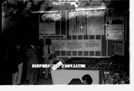 Menteri perdagangan Rachmat Muljomiseno (Kabinet Djuanda / Kabinet Karya, 9 april 1957 – 6 juli 1959), sedang berhenti didepan stan milik kementerian negera urusan transmigrasi dalam menghadiri pameran pemerintah / CEFI (Center For Economical Fairs of Indonesia) di Surabaya, 2 – 12 – 1958