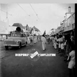 Mobil kementerian penerangan yang ikut dalam rombongan parade dalam pekan Irian Barat di Surabaya, 27 – 10 – 1957