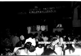 Nampak para hadirin sedang berdiri pada peringatan wafatnya raja sisingamangaraja (17-6-1907 – 17-6-1956), 17 – 6 – 1956