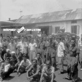 Item VI.57.2138 - Para karyawan Koninklijke Paketvaart Maatschappij (KPM) (sebuah perusahaan pelayaran yang mempunyai kedudukan hukum di Amsterdam, kantor pusat operasinya berada di Batavia, beroperasi mulai dari tahun 1888 Pada 3 Desember 1957, KPM diambil alih aksi buruh, yg kemudian dinasionalisasi oleh pemerintah RI : wikipedia) pada aksi pemogokan (kampanye pembebasan irian barat) di Surabaya, 2 – 12 – 1957