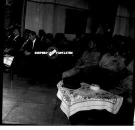 Para pejabat dan perwiara undangan pada upacara penganugrahan gelar pahlawan nasional K.H. Hasyim Asj’ari dan Soerjo mantan Gubernur Jawa Timur di Gedung Negara Grahadi, 21 – 12 – 1964