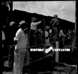 Para pejabat tengah menyaksikan lomba pacuan (patjuan) kuda di jombang (djombang) jawa timur, 26 – 8 – 1956