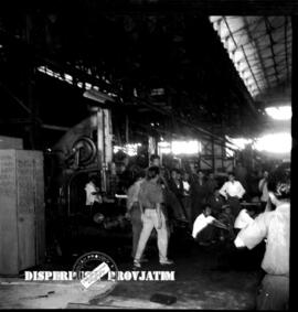 Para pekerja parbik Tegel dan Beton LIGTVOET duduk-duduk dengan santai pada saat aksi pemogokan / pembebasan irian barat di Surabaya, 2 – 12 – 1957