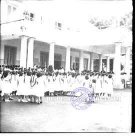 Para pelajar putri dalam Peringatan HUT Kemerdekaan Republik Indonesia ke 11 di gedung negara grahadi Surabaya, 17 – 8 – 1956